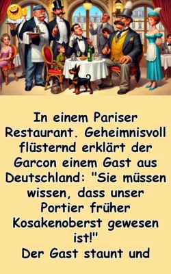 In einem Pariser Restaurant. Geheimnisvoll flüsternd erklärt der Garcon einem Gast aus Deutschland: „Sie müssen wissen, dass unser Portier früher Kosakenoberst ..