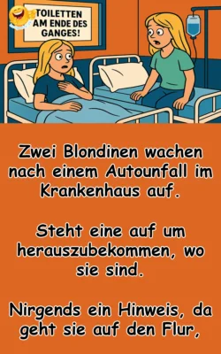Zwei Blondinen wachen nach einem Autounfall im Krankenhaus auf. Steht eine auf um herauszubekommen, wo sie sind. Nirgends ein Hinweis, da geht sie auf den Flur, ..