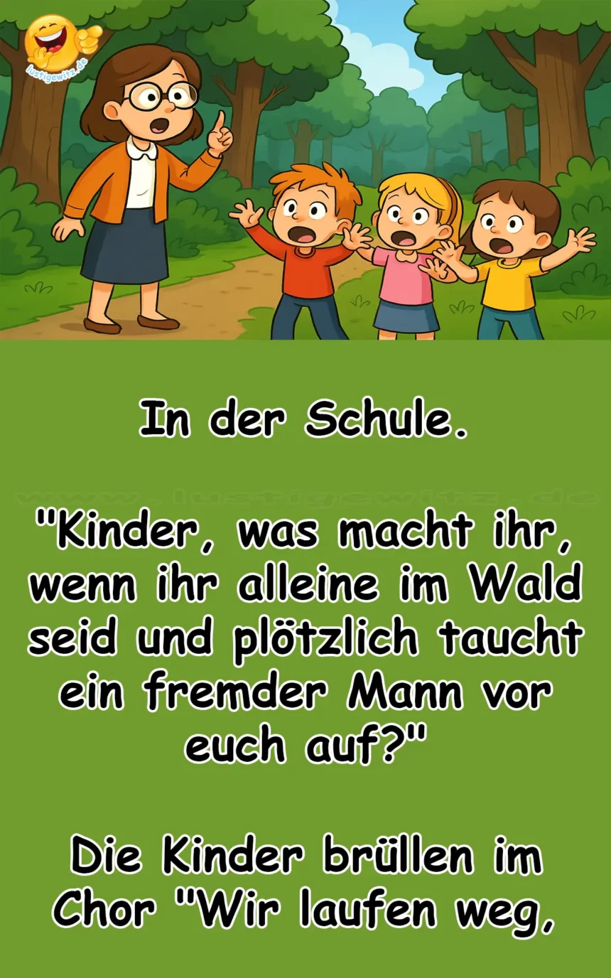 „Kinder, was macht ihr, wenn ihr alleine im Wald seid und plötzlich taucht ein fremder Mann vor euch auf?“