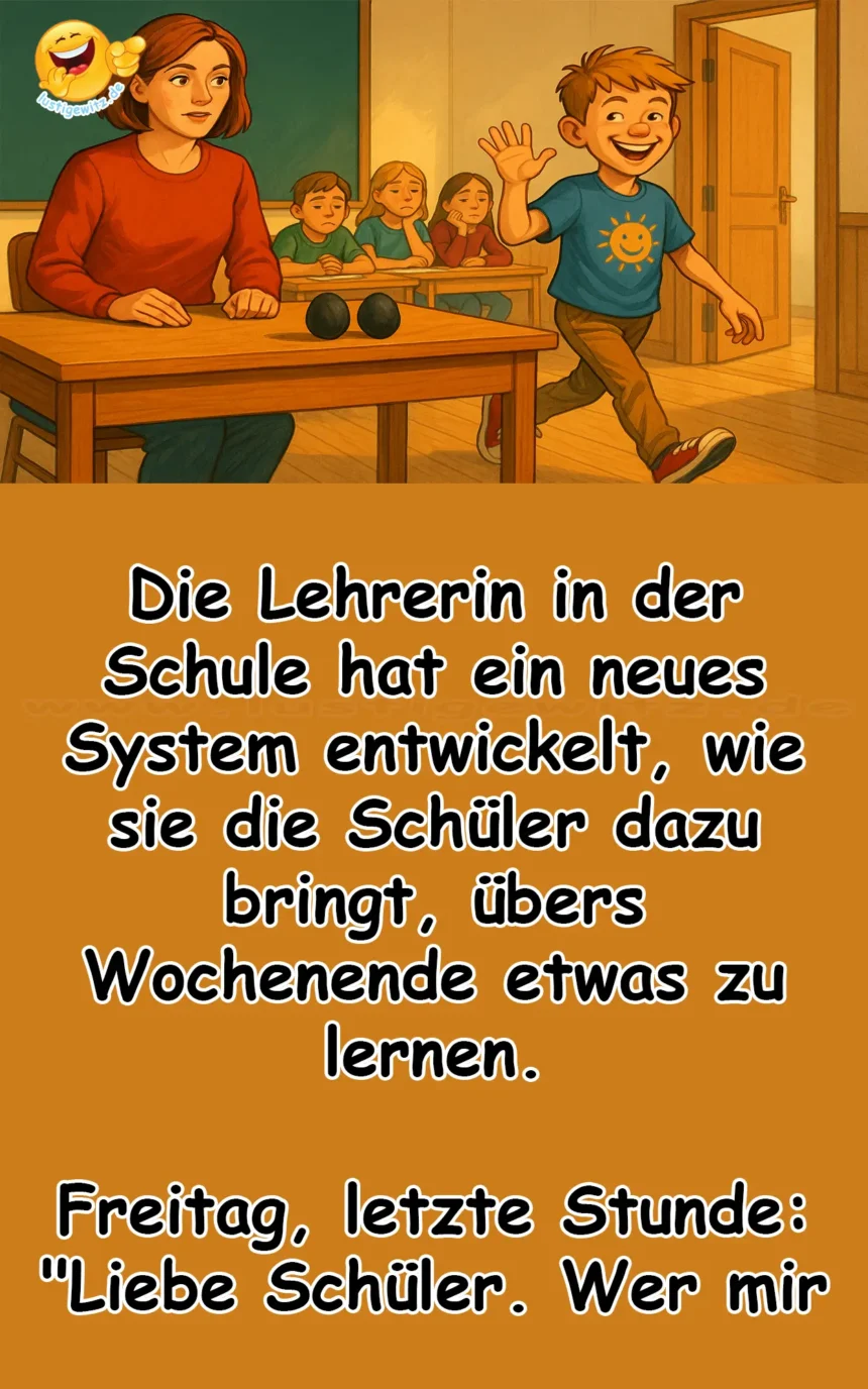 Die Lehrerin in der Schule hat ein neues System entwickelt, wie sie die Schüler dazu bringt, übers Wochenende etwas zu lernen.