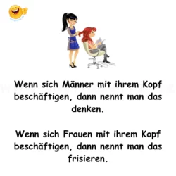 Wenn sich Männer mit ihrem Kopf beschäftigen, dann nennt man das denken. Wenn sich Frauen mit ihrem Kopf beschäftigen, dann nennt man das frisieren.